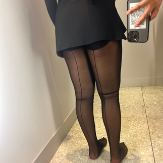 I tried both the mesh skirt and denier tights with seams in the XL. The skirt was a perfect fit, but the tights were pooling around different parts of the legs.